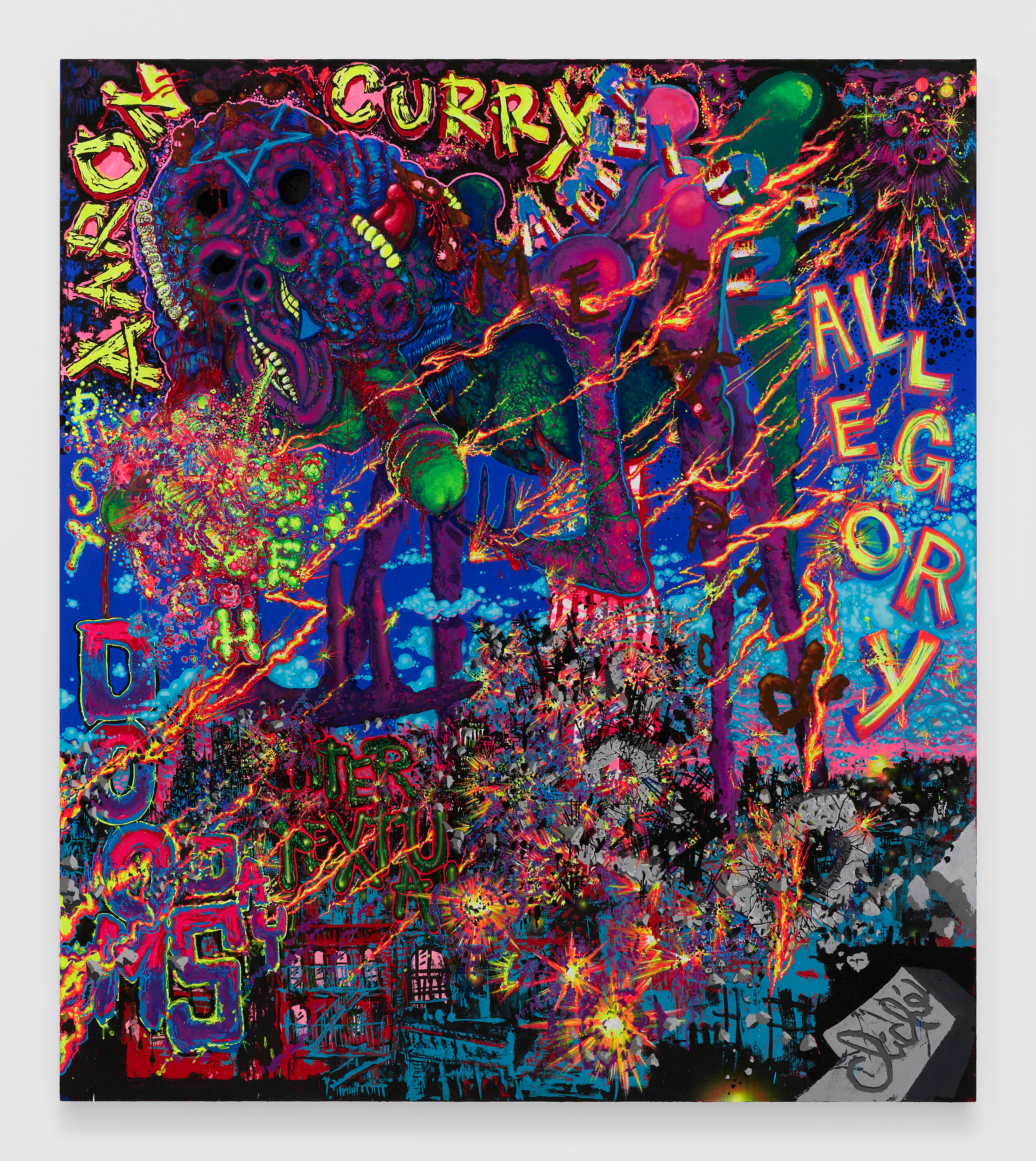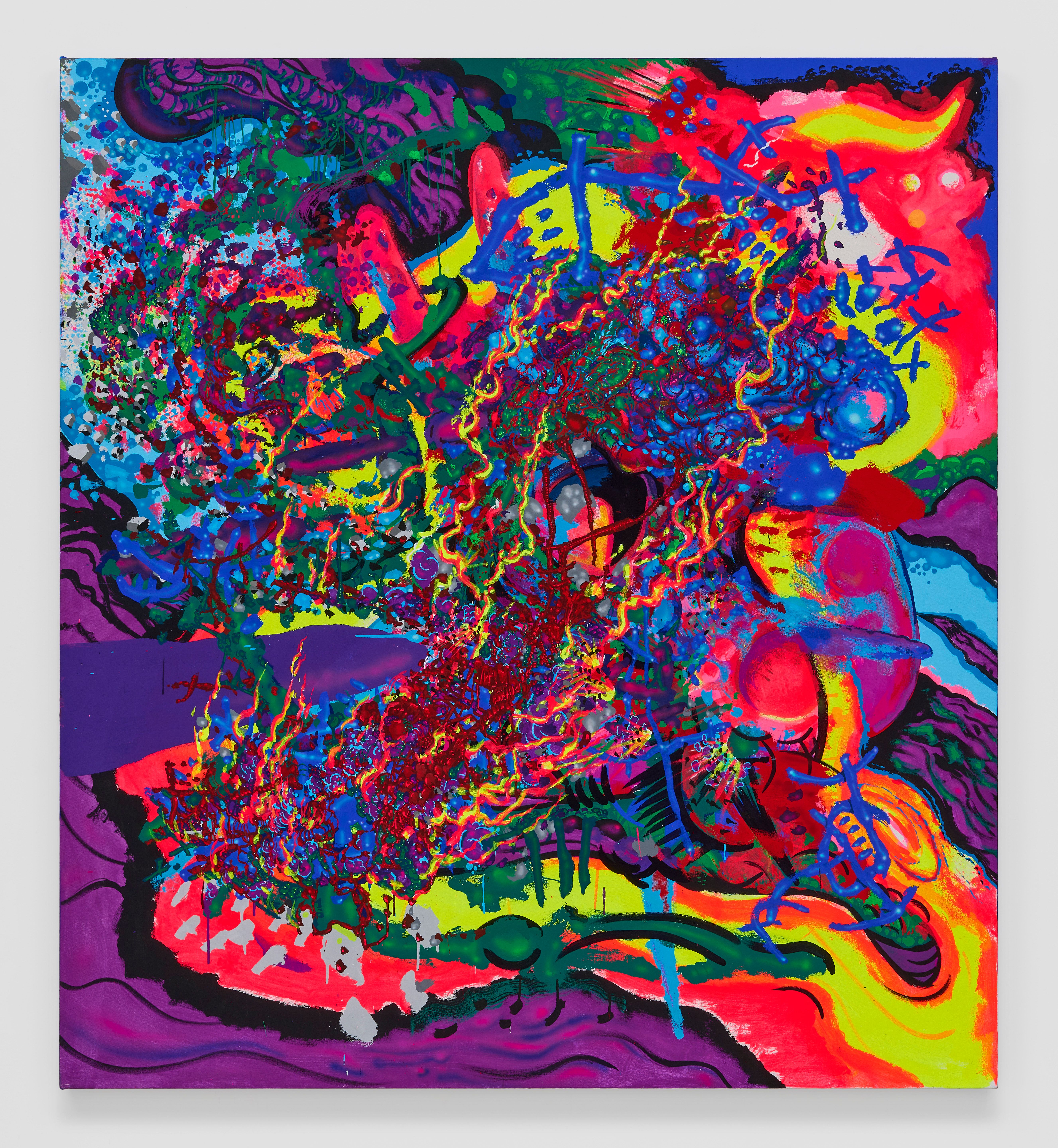 Aaron Curry, Doomsday Abstraction, 2022. Acrylic gouache on canvas, 66 x 60”(167.5 x 152.5 cm)