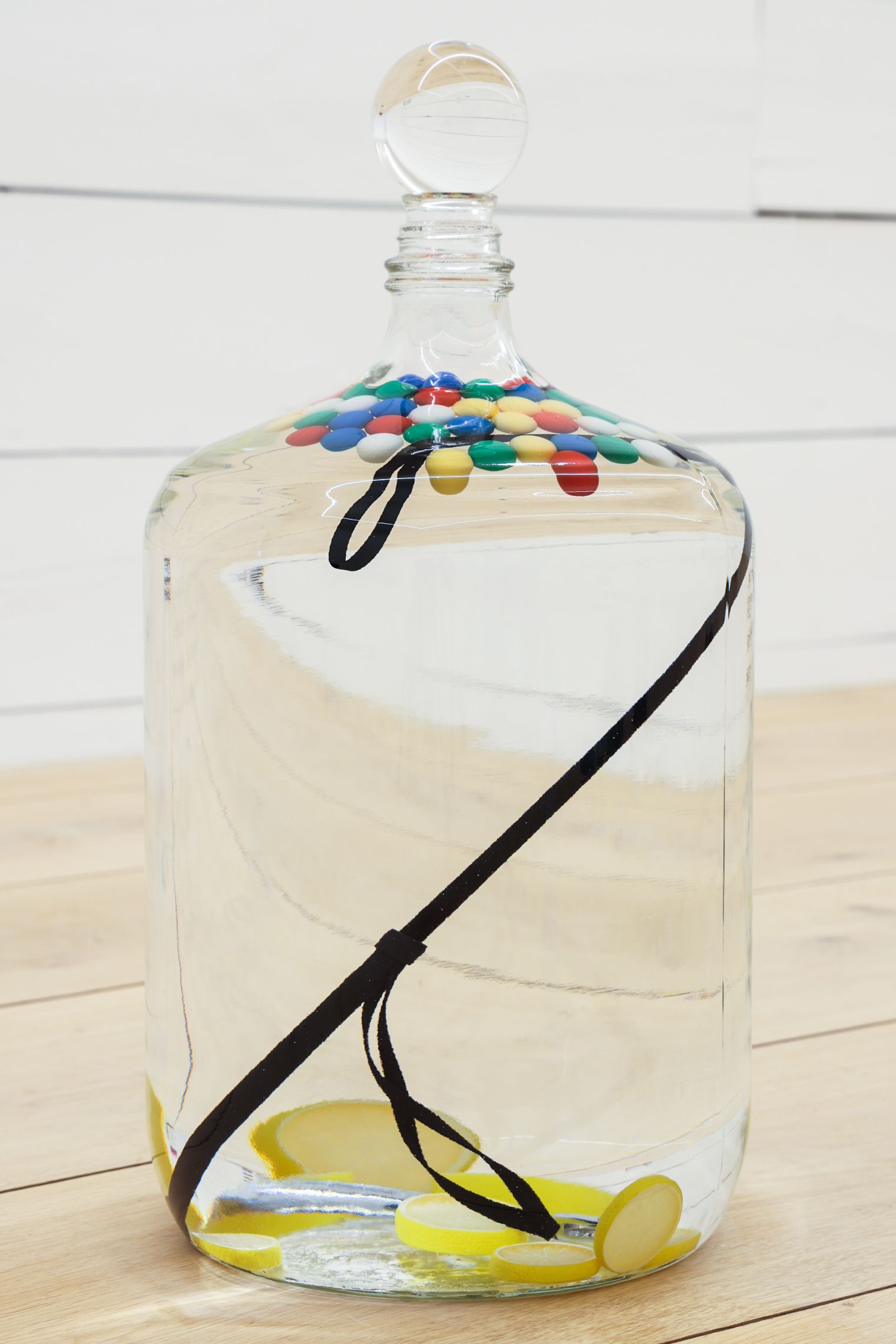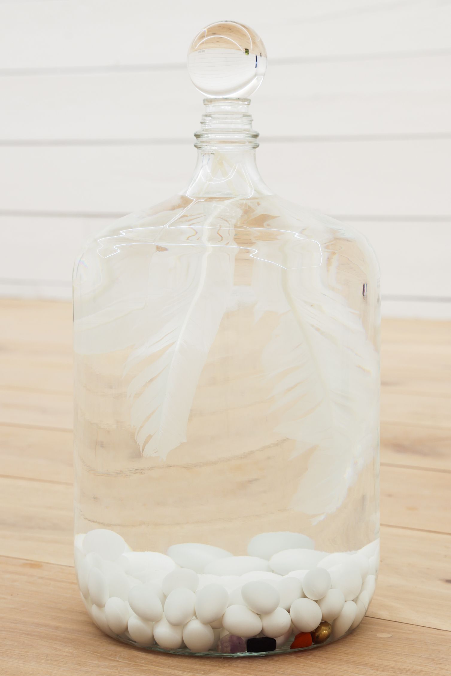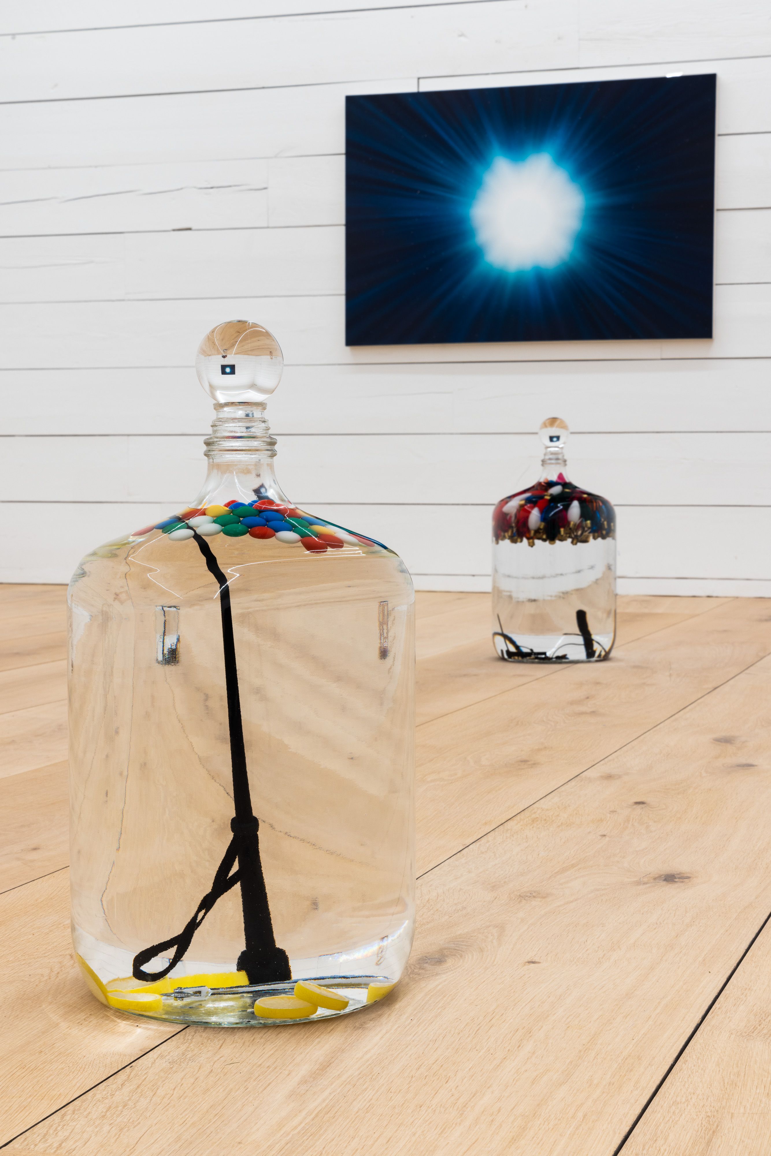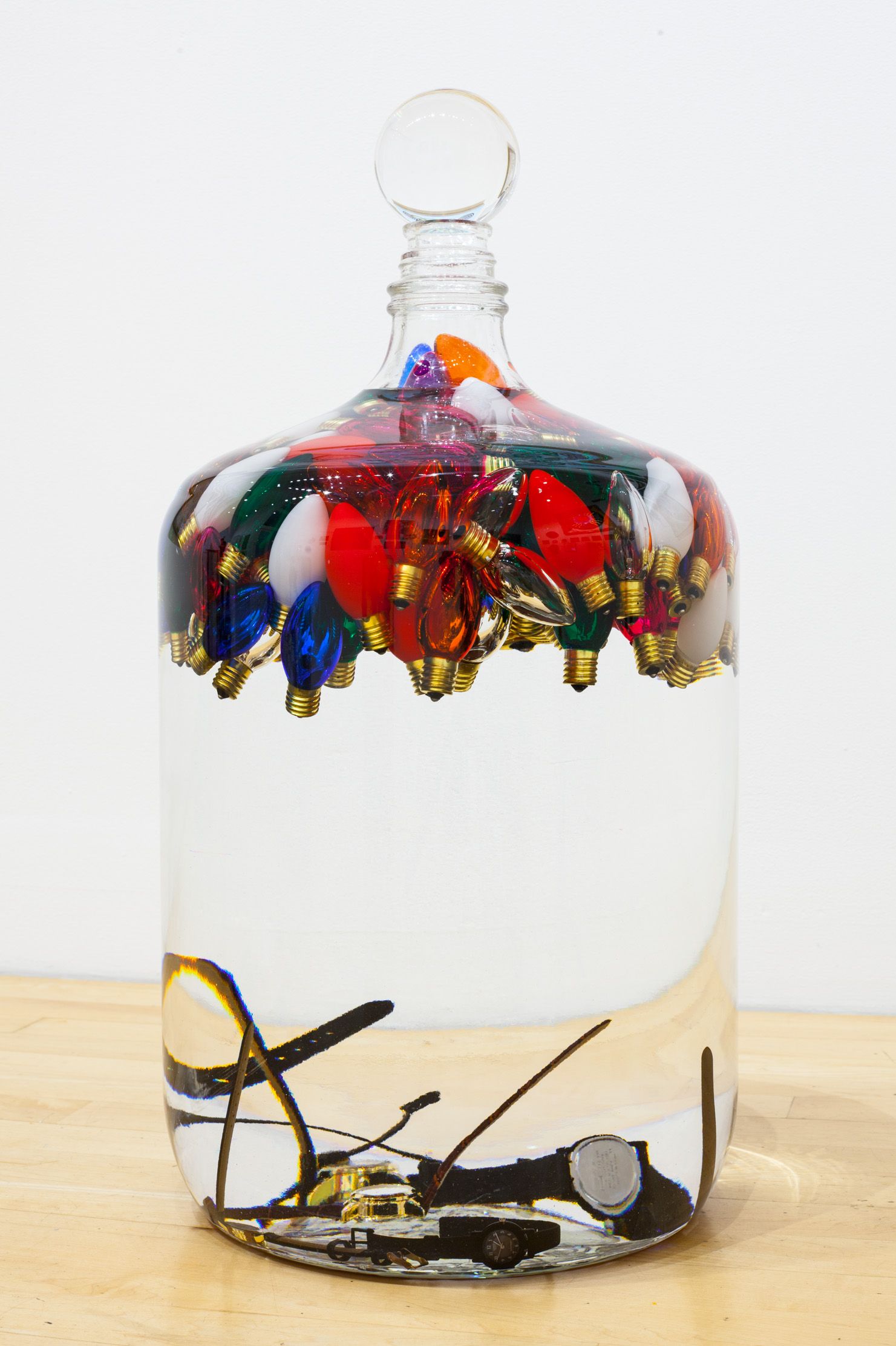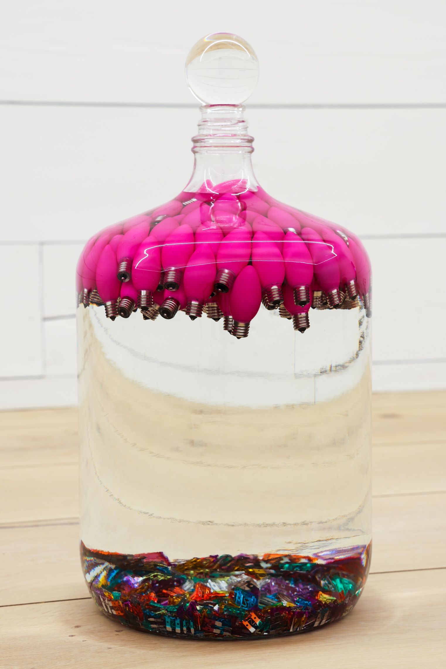 Spell for low entropy, 2019 Fuses, light bulbs, Venetian glass vessel, preservative oil, crystal sphere, and other unnamed things 12 x 12 x 24 in (30.5 x 30.5 x 61 cm)